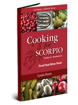 Leo the sign of royalty, and ‘fit for a King or Queen’, is ruled by the Sun. The lion loves the best, wants to have fun, can be generous and tolerant, and loves to shine. Leo will take pains to have, do, and present the best. Enjoying the company of others is a Leo specialty and eating a meal, especially in a party-like atmosphere that’s fun, is fulfilling to them. A sign of leadership, a Leo will be in charge in the kitchen and has a very artistic approach to the cooking and creating of food. High-end and golden foods are highlighted in this book.